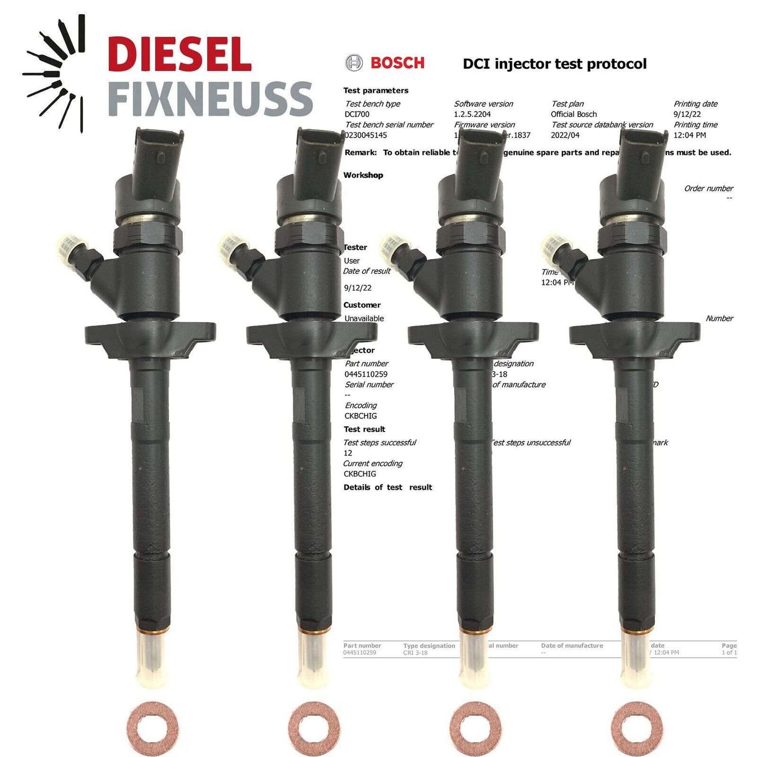 4x Inyector AT incl. anillo de sellado de cobre + junta tórica + informe de prueba entregado.